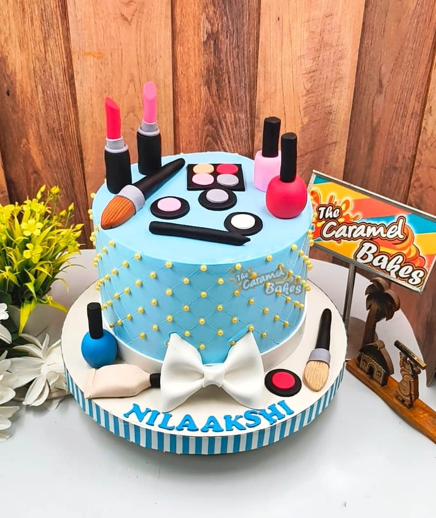 Stylish and glamorous Makeup Theme Cake specially designed for girls and beauty lovers.